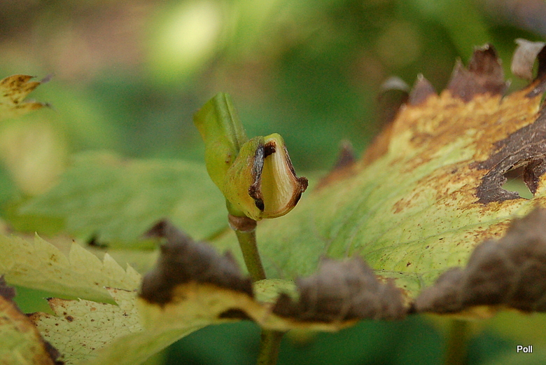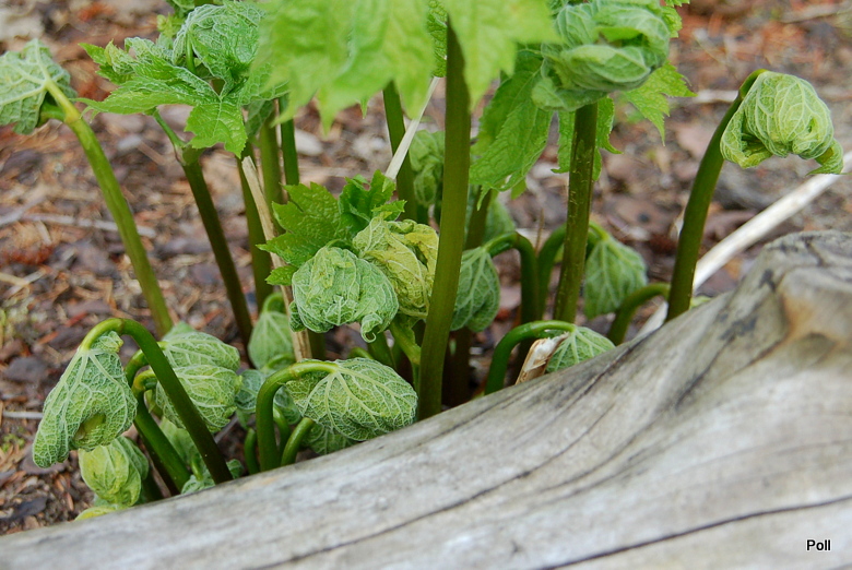 Glaucidium palmatum pojawia się na powierzchni ziemi, błyskawicznie, w ciągu dosłownie kilku dni rozwija liście i ukazuje ukryte w nich kwiaty.