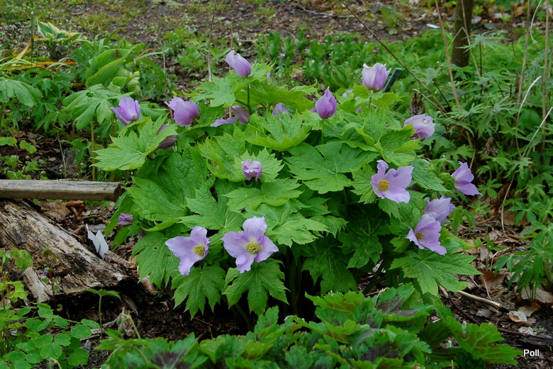 Ja swoje Glaucidium palmatum podzieliłam w ubiegłym sezonie, więc nieco je zmniejszyłam optycznie :lol: Tegoroczna gorąca wiosna spowodowała bardzo szybkie przekwitanie wczesnokwitnących bylin . Tak więc, pełnia kwitnienia przypadła na ostatnią dekadę kwietnia, ale po kilku dniach nie było już śladu kwiatów. :( Późnym latem przesadziłam więc roślinę na inne, chłodniejsze stanowisko za mur hostowiska. Czy ten zabieg wyjdzie na zdrowie mojemu glaucidium, przekonam się wiosną.