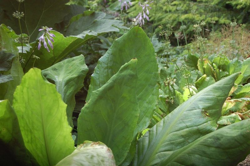 Tulejniki amerykańskie w ogrodzie RHS w Harrogate ( przedstawione na zdjęciach w pierwszym poście) . Rosną nad potokiem i nawet pod wyższymi bylinami ich błyszczące, wielkie liście sa dobrze widoczne