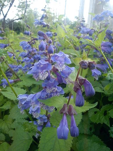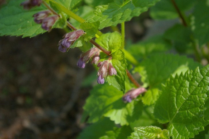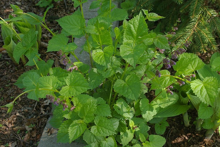 Jak każda roślina narażona na zacienienie w trakcie sezonu ( np zawilce), szybko rozpoczyna wiosenną wegetację , aby zdążyć zakwitnąć przed rozwojem mocnego cienia, pochodzącego od liści drzew . Już na przełomie IV i V, pojawiają się pierwsze lawendowe kwiaty z białą, cętkowana warżką, przypominające budową kwiaty Lamium. Kwitnienie zazwyczaj trwa do końca lipca, wtedy też przycinam swoje mehanie , gdyż robią się nieco zbyt duże i tracą ładny wygląd. Liście z kolei, sercowate, ząbkowane brzegiem i lekko owłosione, przypominają liście pokrzywy, sa jednak nieco bardziej miękkie i nie parzą.