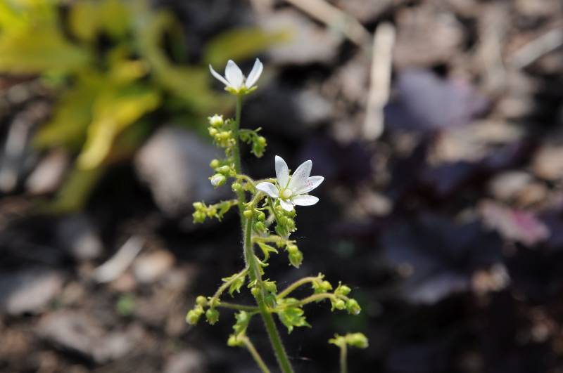 Kwitnie moja Skalnica cienista 'Variegata', zrobiło się jej zbyt cieniście i traci 'ciapki' na liściach. Trzeba jej zmienić miejsce :)