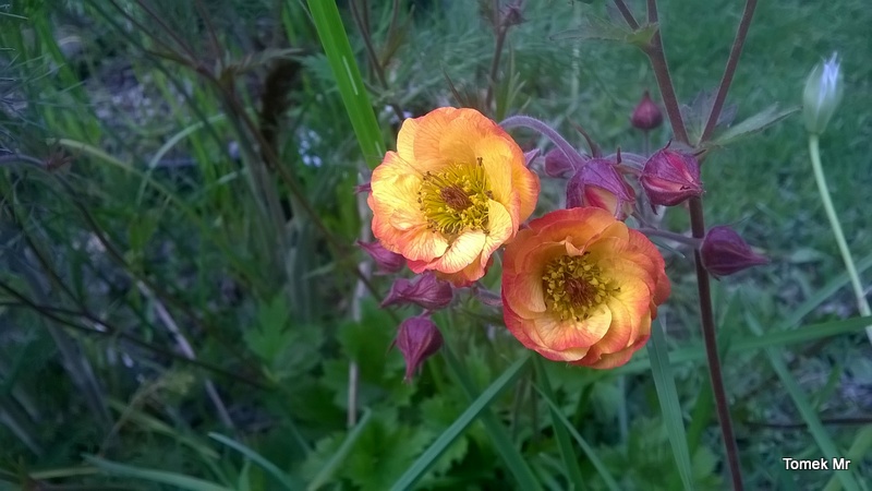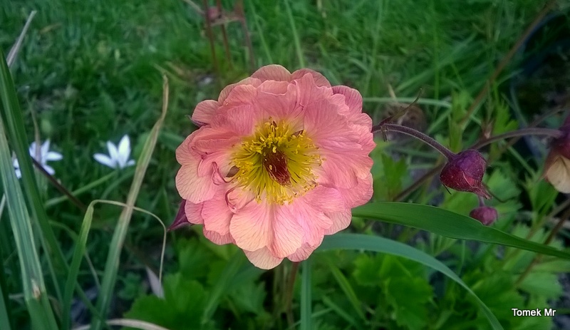 Pod koniec kwietnia rozpoczął kwitnienie kuklik Sea Breeze (Geum Coctails "sea Breeze")