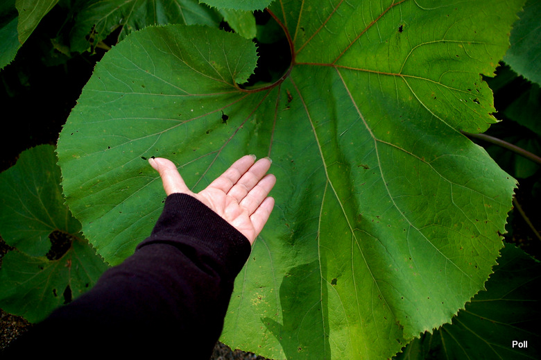 giganteus , tak poprawnie brzmi nazwa tego roślinnego giganta, który wyglądem przypomina nieco rabarbar, czy nasz rodzimy, ale wyrośnięty łopian. Charakterystyczne, okrągłe liście sa dobrze widoczne z daleka, gdyż osiagają, jak i cała roślina , naprawdę olbrzymie rozmiary.