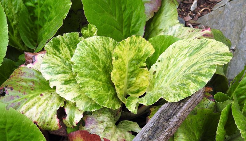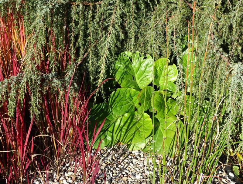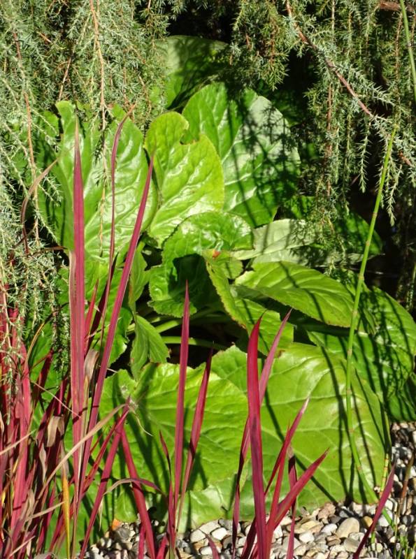Natomiast liście bergenii orzęsionej (Bergenia ciliata) zostały ścięte i już się nie podniosą