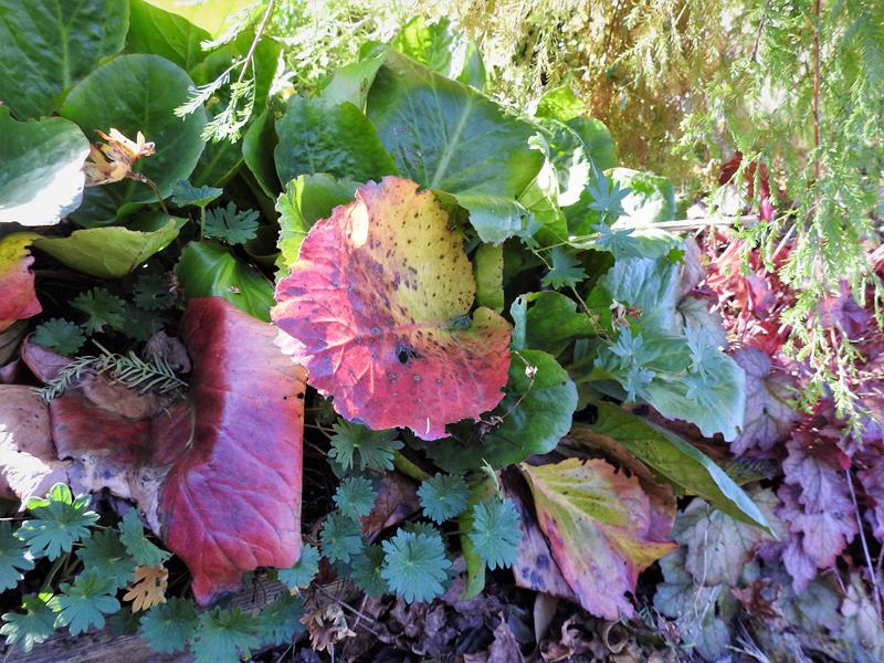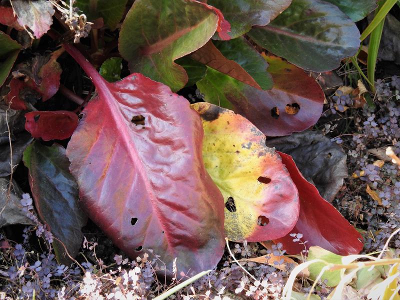 Bergenie w tym roku bardzo ładnie, jesiennie się przebarwiają ... a niektóre jeszcze ładnie kwitną.