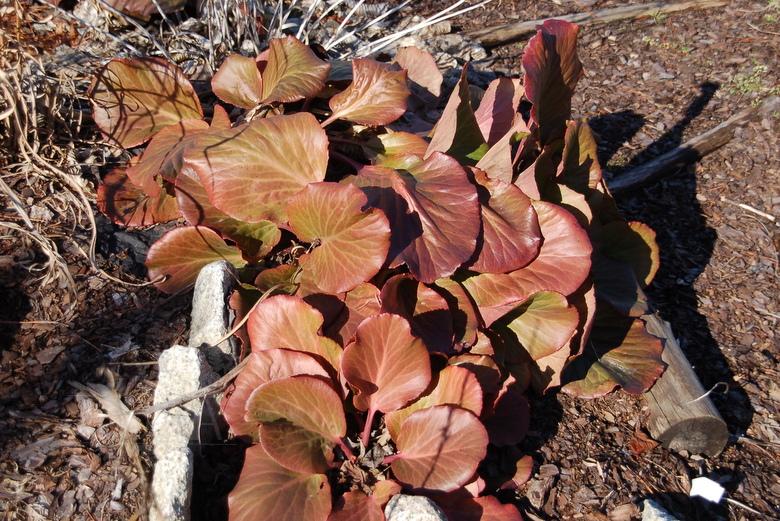 Bergenia "Tubby Andrews" ładnie przezimowała.