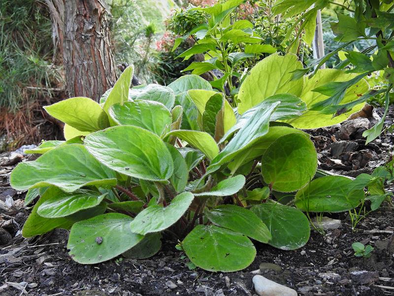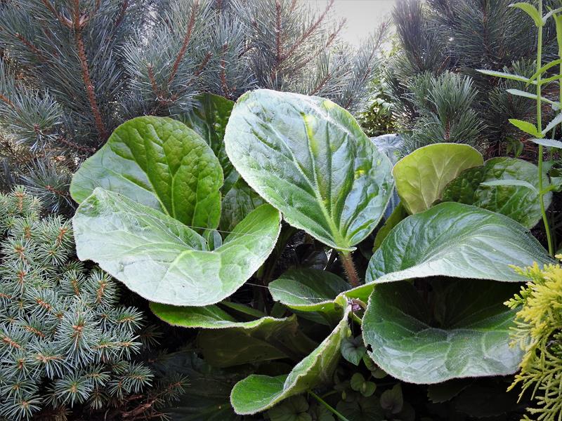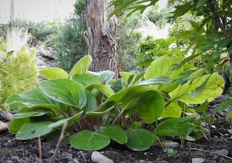 Bergenia ciliata rośnie na cienistym, ale niezbyt wilgotnym miejscu a jednak ładnie się namnożyła