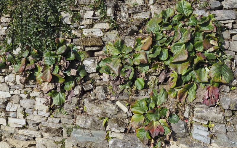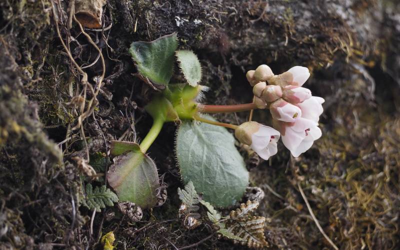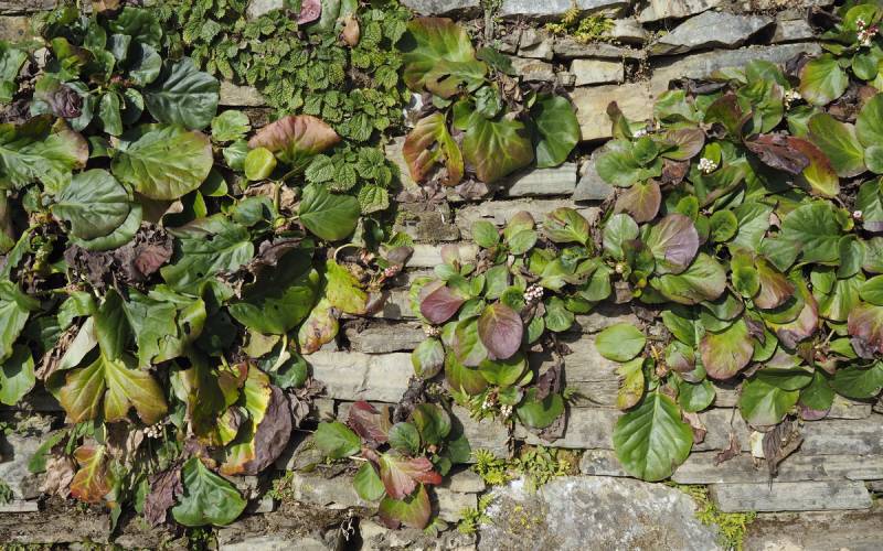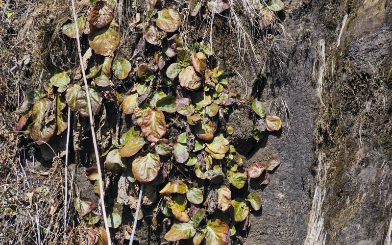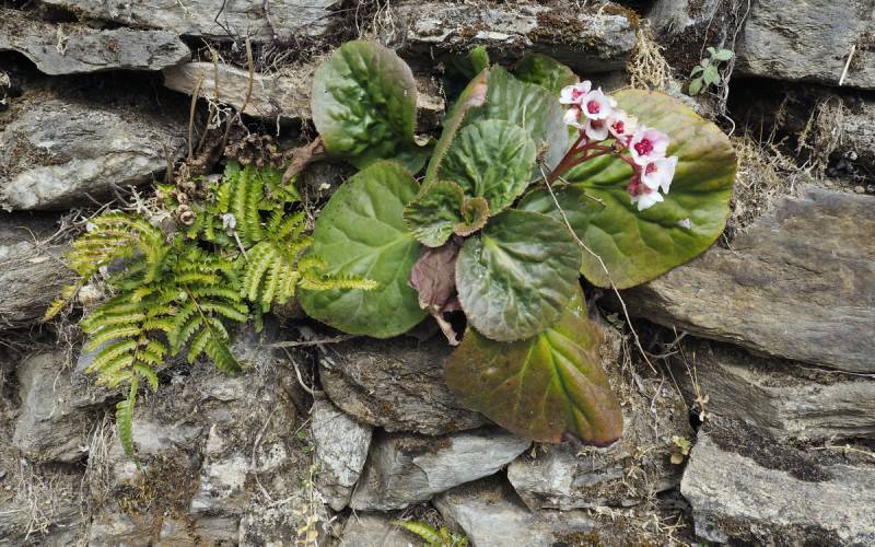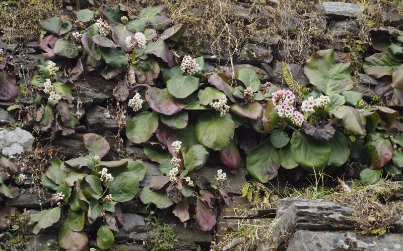 Bergenie na stanowiskach naturalnych u podnóża Himalajów (region Annapurny) występują przeważnie na pionowych,