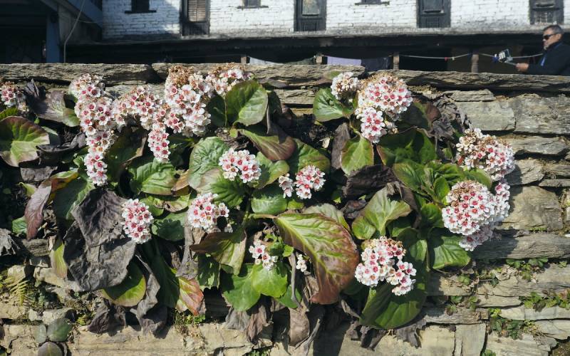 W niżej położonych wioskach bergenie na początku lutego były już w pełnym rozkwicie. Wydaje mi się,