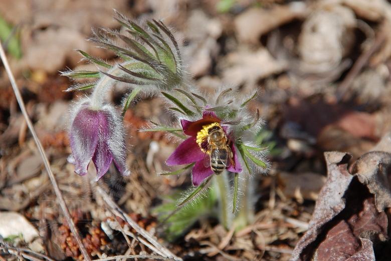 Sasanki nie dość, że są piękne to jeszcze pszczółki je uwielbiają :owady :owady :owady