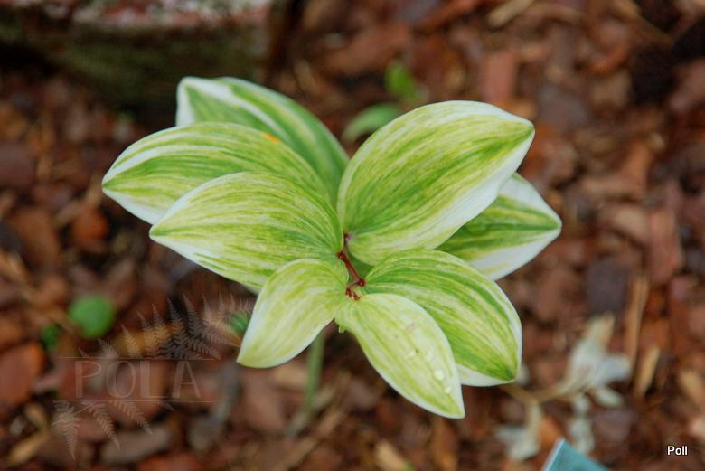 Kokoryczka o hybrydowym rodowodzie, pochodząca z Japonii. Jej liście są obrzeżone marginesem w kolorze ecru/białym a centrum pokryte jest delikatnymi, zielonymi, zóltawymi i białymi paseczkami. Wezeł, skąd liście mijankowo wyrastają z łodygi, wybarwia się często na czerwonomalinowy kolor, co dodatkowo ubawia roślinę. Kwiaty są czysto białe, o kształcie dzwoneczków i pojawiają się zazwyczaj w maju.