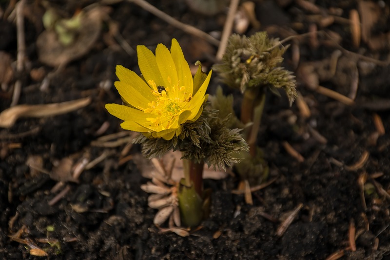 W tym roku jako pierwszy zakwitl Adonis amurensis 'Nadeshiko'