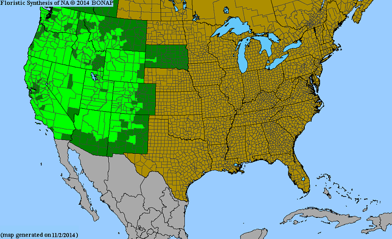 Mapa przedstawiająca zasięg występowania wszystkich gatunków Lewisia