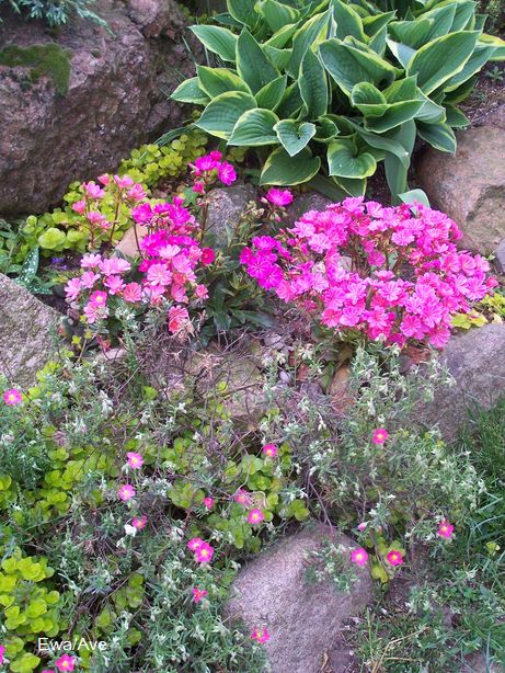 - powinna być sadzona w szczelinach, a nawet w prawie pionowych skarpach - to starałam się zachować - sadziłam tak, żeby po podlaniu woda odpływała z rozety. Zamoczenie rozety powoduje jej gnicie.