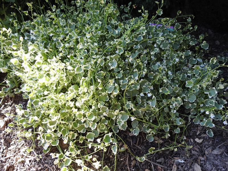 Cymbalaria murowa niemal nieprzerwanie kwitnie. Bardzo się rozrosła na stoku paprociowym, więc trochę ją zaczęłam wypielać.