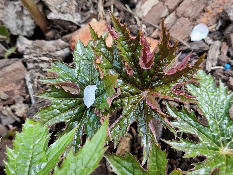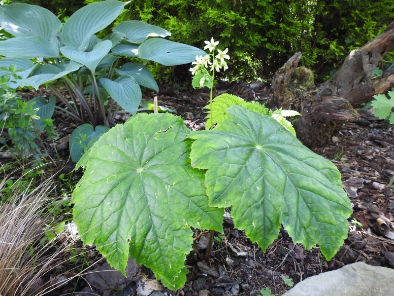 Peltoboykinia tellimoides i jej niesamowite, młode liście.