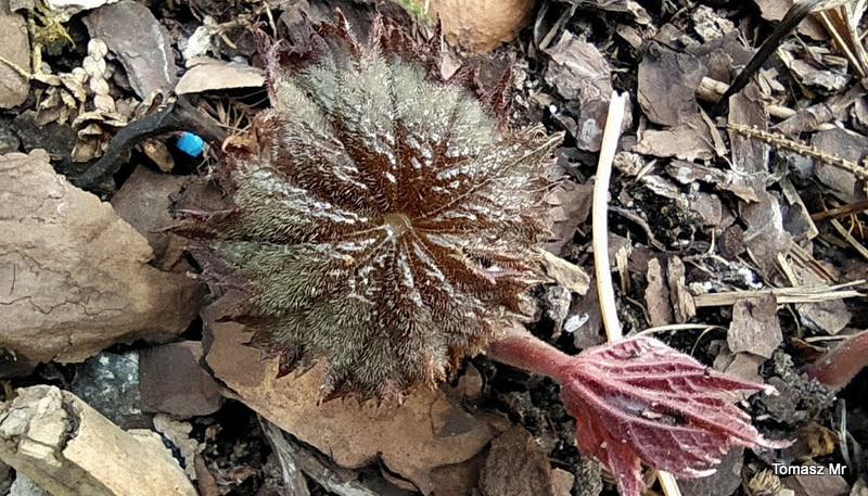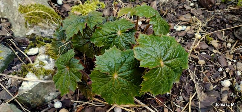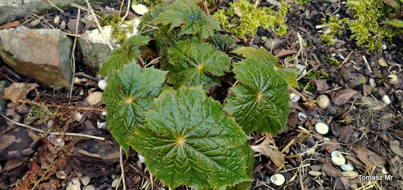 Peltoboykinia tellimoides wznowiła wegetację dość spora kępką