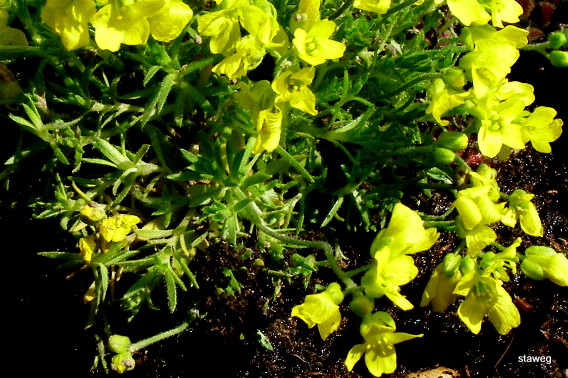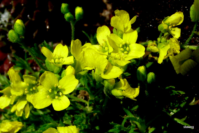 Trochę poszperałem i wychodzi mi na to, że rośnie u mnie Głodek kaukaski (Draba bruniifolia). Naturalnie występuje on w Armenii, Turcji i na Kaukazie.