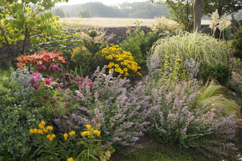 Bardzo podobają mi się te kocimiękowe rzeki, u mnie na razie punktowo na rabatach. Kocimietka gatunek, czyli kota tarzanie.