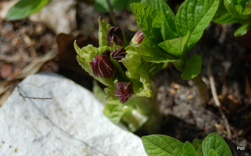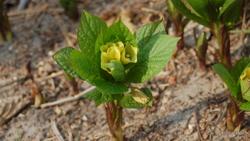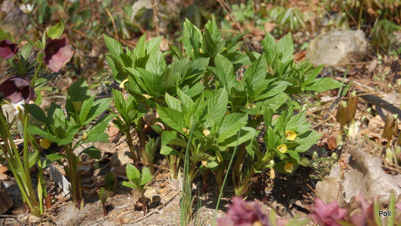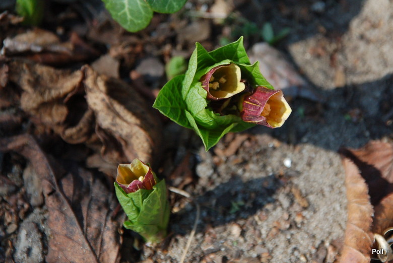 Nocne temperatury skosiły pierwsze żółte kwiaty lulecznicy kraińskiej (Scopolia carniolica f. hladnikiana ), ale jeszcze kilka dość niepozornych, rozwinęła. teraz idzie w liście