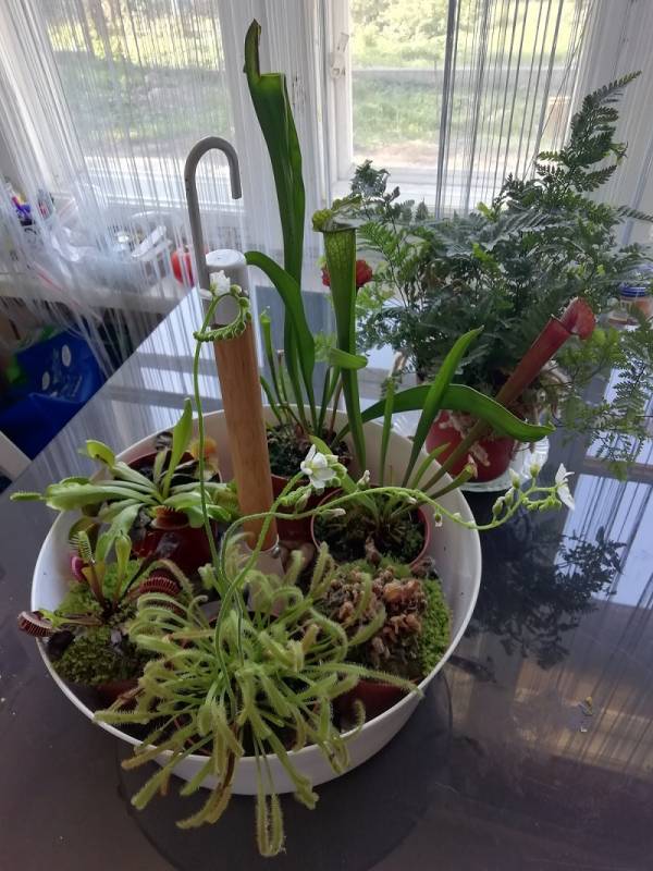 Podlewanie: woda demineralizowana bądź deszczówka. Na dłuższą metę podobno woda z filtra uśmierci rośliny. Największe zapotrzebowanie mają rosiczki (drosera)