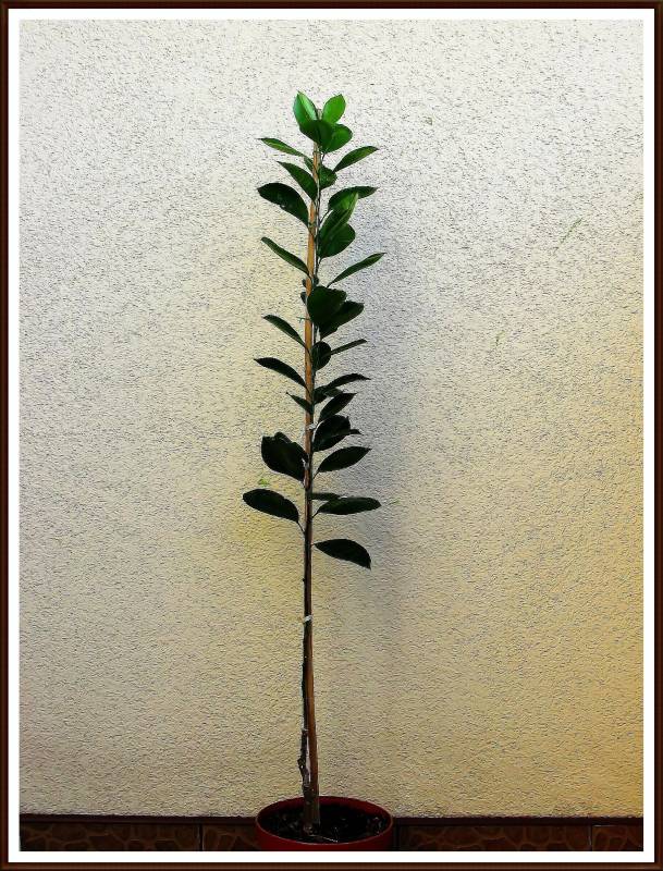 ). Uciąłem 60% po czym szybko odzyskiwał utracone centymetry. Tak mijały lata - on rósł, ja ciałem...ale nigdy nie zakwitł. Gdzieś koło 7-8 jego roku życia zaszczepiłem go cytryną Skierniewicką (Ponderosą) i dałem podrosnąć do 2 metrów (postanowiłem w tym czasie o niego zadbać). Przyszła jesień, schowałem roślinę do mieszkania...i padła.