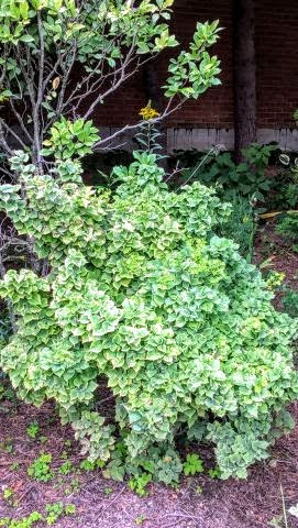 Nowa, wolno przyrastająca odmiana o ciekawych, pstrokatych liściach. Jasna zieleń nieregularnie miesza się z żółtym lub kremowym kolorem. Daje to bardzo ciekawy efekt. Najlepszym stanowiskiem będzie jasne lub półcieniste, choć muszę przyznać, że u mnie świetnie sobie radzi na stanowisku w pełni słonecznym :slonko
