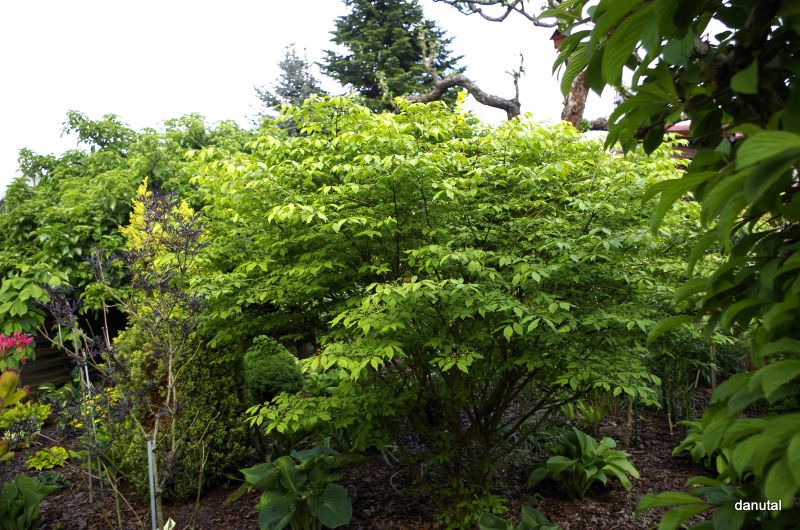 Liście wiosną jasno zielone, latem przebarwiają się w ogniście czerwony kolor.
