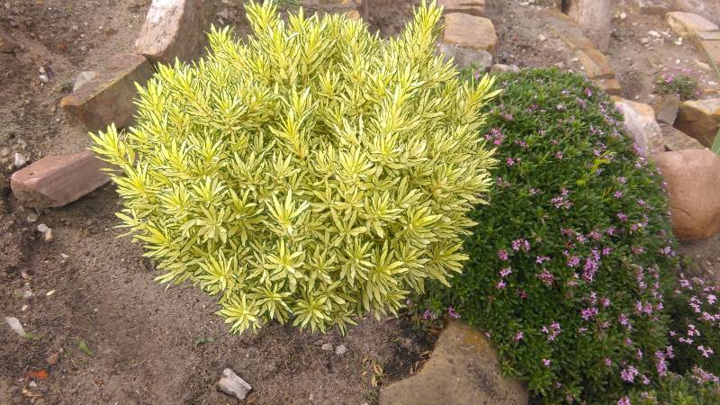Podobno wawrzynek główkowy pachnie zapachem goździka. Nie wąchałam. Muszę o tym pamiętać na wiosnę. Acz nie wiem, czy będę mogła wkraść się ze swym nosem na tą rabatę, bo akurat znajduje się ona vis-a-vis kasy. gwizdac