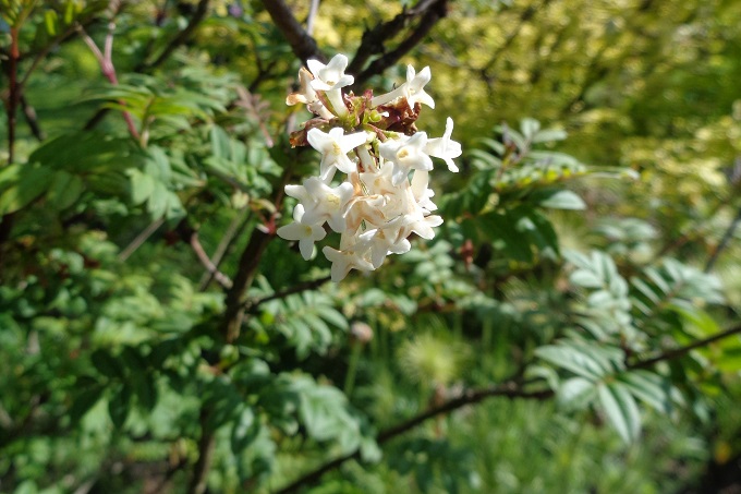 Kwiaty białe bądź lekko różowe (szczególnie na początku kwitnienia); ładnie pachnące. Pochodzi z Chin, jest nie wymagający, odporny na suszę i mrozy. Do nasadzeń grupowych lub jako soliter.