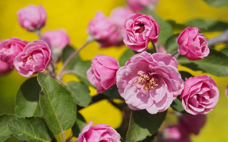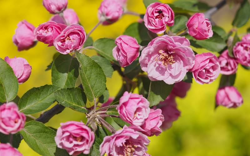 Jabłoń Royalty- dorasta do ok 4-6 m szerokości i wysokości. Kwitnie obficie i tak też owocuje, chociaż u tej odmiany jabłuszka przypominają raczej wisienki