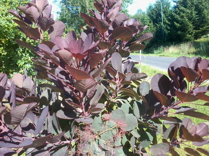 Monika , w obrębie odmiany , która ma liście bordowo zielone , jest kilka nazw Follis Purpureus , Rubrifolius i pewnie też Purpureus . Nikt chyba nie wie czy to nie jedna i ta sama odmiana . U Kurowskich jest napisane ,że Purpureus ma zielone liście a Follis bordowe . Mój perukowiec na początku miał liście bardziej bordowe , ale im był starszy tym bardziej zielony i mało letnich . bordowych przyrostów . Teraz ma może 2.5metra wysokości i 3 m. szerokości i ma ponad 18 . lat Ta roślina z powyższego zdjęcia jest jego odrostem , bo gałęzie leżące na ziemi same się ukorzeniają .