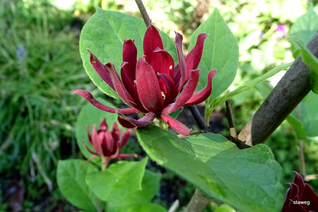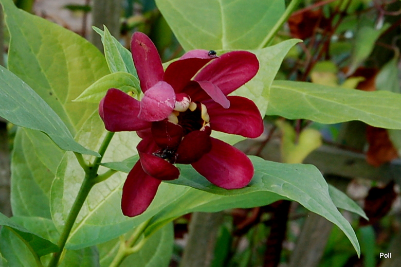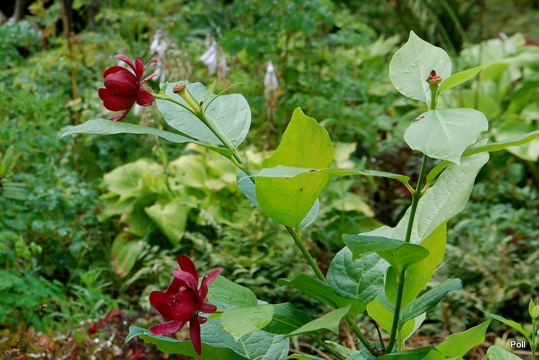 Calycanthus floridus). Ten interesujący, choć dość rzadko spotykany w ogrodach krzew ozdoby, posiada nie tylko ciekawe kwiaty i przebarwiające się jesienią na żółto liście, ale też zachwyca dość mocnym, charakterystycznym aromatem, przypominającym zapach jabłek i goździków.