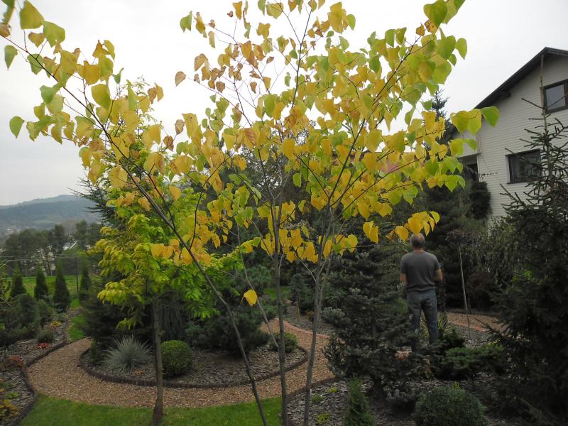 Uprawiam takiego który dał się wcisnąć czyli 'Ruby Falls', fajna odmiana dla wciskaczy takich jak ja albo dla uprawiających mniejsze ogrody. Rośnie dobrze , nie przemarzł choć nie był okrywany ( co prawda rośnie w zaciszu, w Polsce centralnej lepiej nie ryzykować uprawy niektórych judaszowców na wygwizdowiu ) i nawet ma jako tako wybarwione liście mimo że teraz rośnie w półcieniu.
