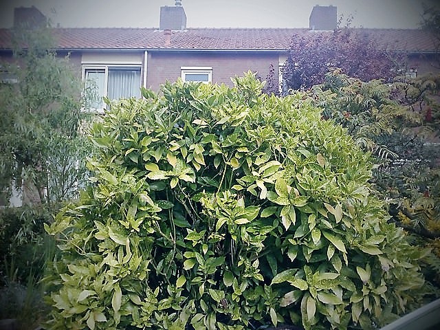 Liście: błyszczące, skórzaste, zielone, czasem płytko i nieregularnie piłkowane.