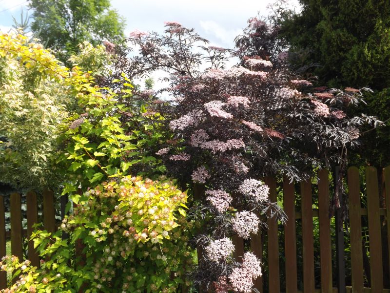 Bez czarny 'Pulverulenta' w trzecim roku po posadzeniu i mocnym wiosennym przycięciu ładnie się rozkrzewił, dorósł do ok. 1,5 m. wysokości clap