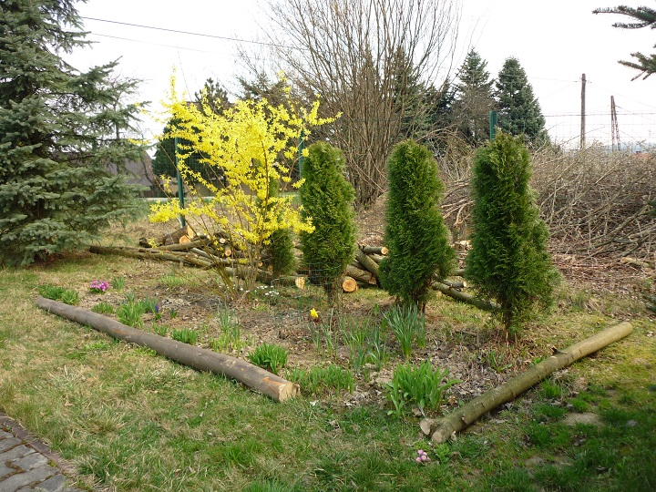 Forsycja najładniej kwitnie na zeszłorocznych pędach, dlatego cięcie powinno się wykonać po kwitnieniu (koniec kwietnia), wycinając najstarsze pędu u podstawy. Przycięcie w późniejszym terminie odbije się niekorzystnie na kwitnieniu w następnym roku.