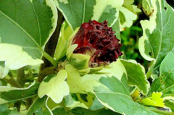 Kwiat: pojedynczy, półpełny, pełny, duży, podobny do kwiatów Malwy, na pędach tegorocznych