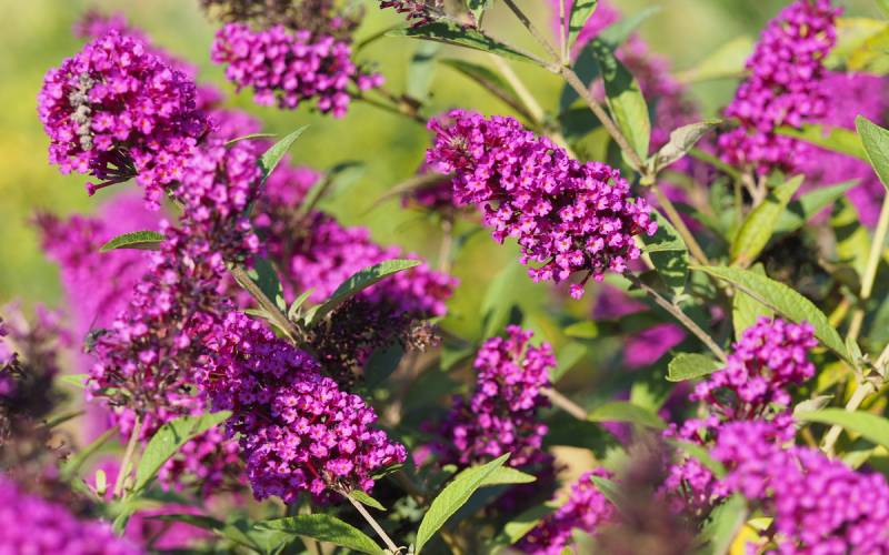 Kwiaty: są największą ozdobą krzewu, drobne, rurkowate, przyjemnie pachnące, zebrane w długie kłosokształtne kwiatostany, wyrastające na szczytach tegorocznych pędów,wabią do ogrodu motyle, różnych gatunków