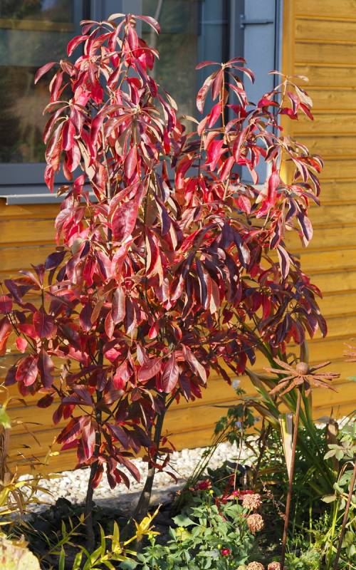 Ulistnienie: liście dosyć duże (10-20cm), lancetowate, błyszczące, jesienią pięknie przebarwiają się na pomarańczowo- czerwono-purpurowe kolory.