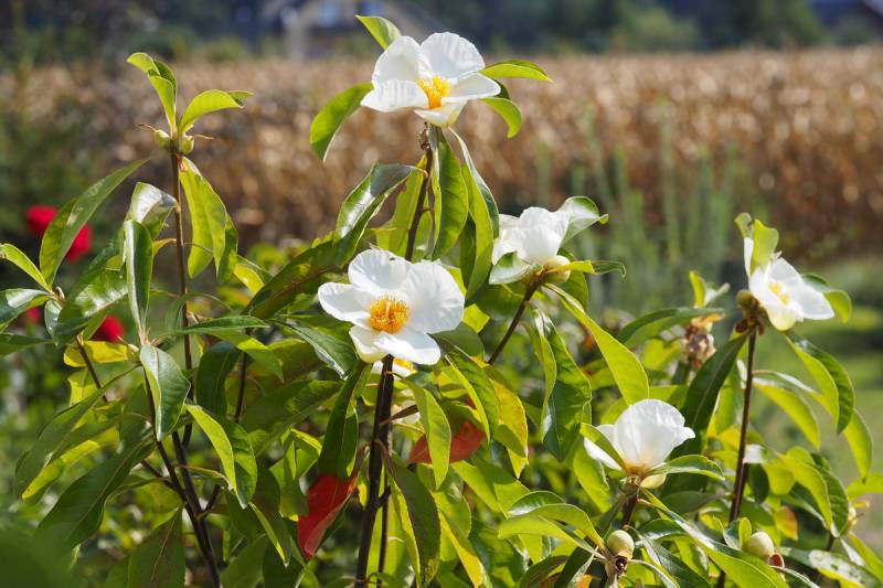 Moja franklinia zakwitła w tym roku wyjątkowo wcześnie, bo już w ostatnich dniach lipca