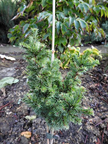 Stożkowy, wąski. Dorasta do 20 m wysokości. Rośnie dość powoli. Korona wąska, gałęzie krótkie, nieco zadarte do góry.