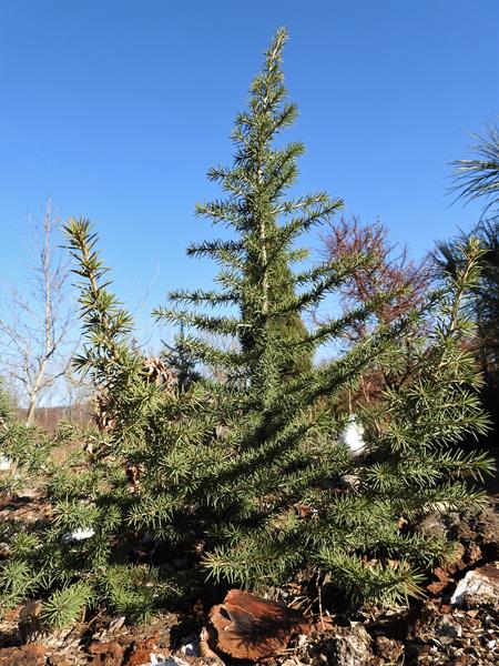 Sadzonka około 10 -cio letnia , dwa razy przesadzana . Początkowo wymarzał do granicy śniegu , teraz nawet jak igły przemarzną i zbrązowieją to i tak wyrastają nowe na nowych przyrostach . W tym roku przy temperaturze do -14 , nie widać uszkodzeń mrozowych , ale -18 już szkodzi igłom .