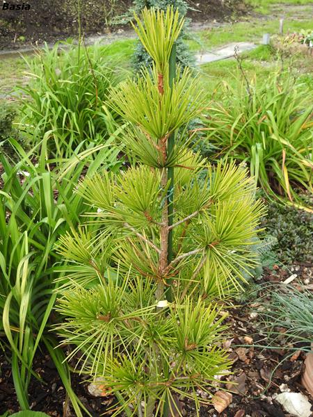 Igły długie, raczej cienkie, jasno zielone, rośnie wolniej niż gatunek.