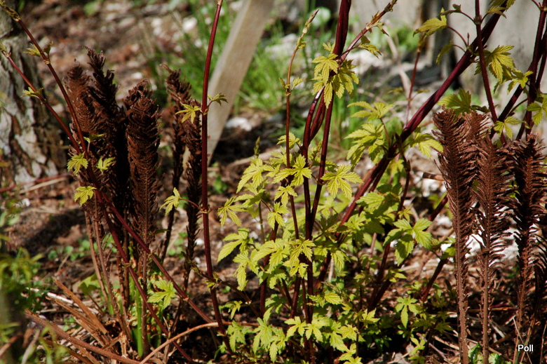Liście duże, potrójnie, głęboko klapowane, szorstkie, ząbkowane, żółte.