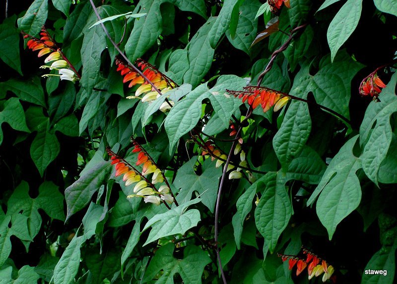 Wilec klapowany (Ipomea lobata var. Mina lobata), zwany Koguci grzebień,