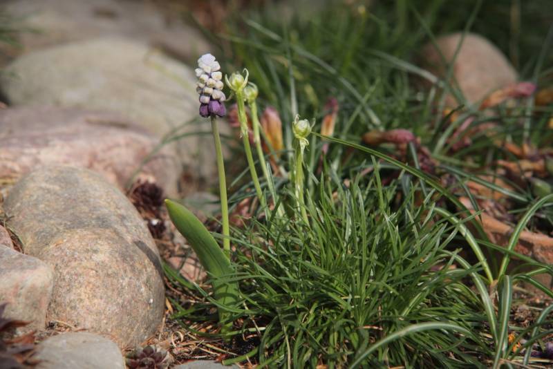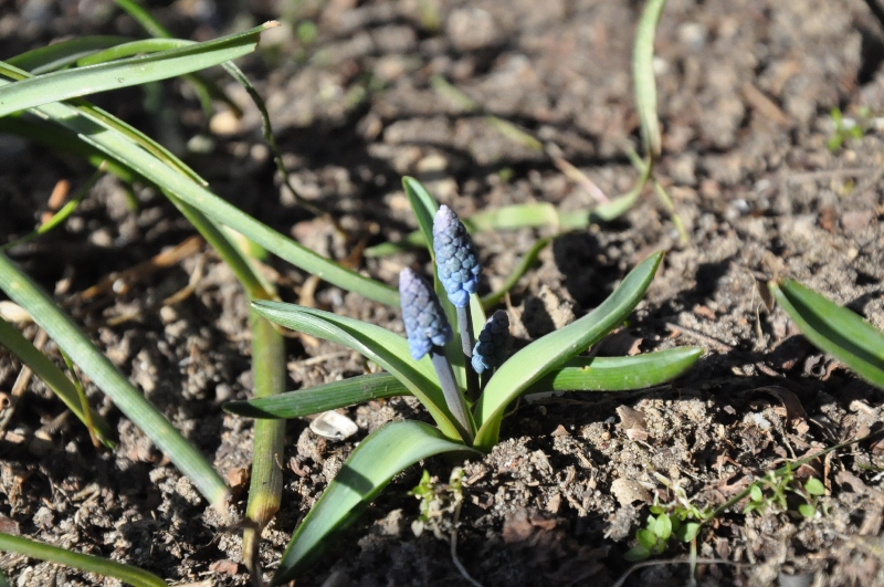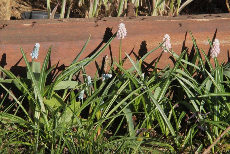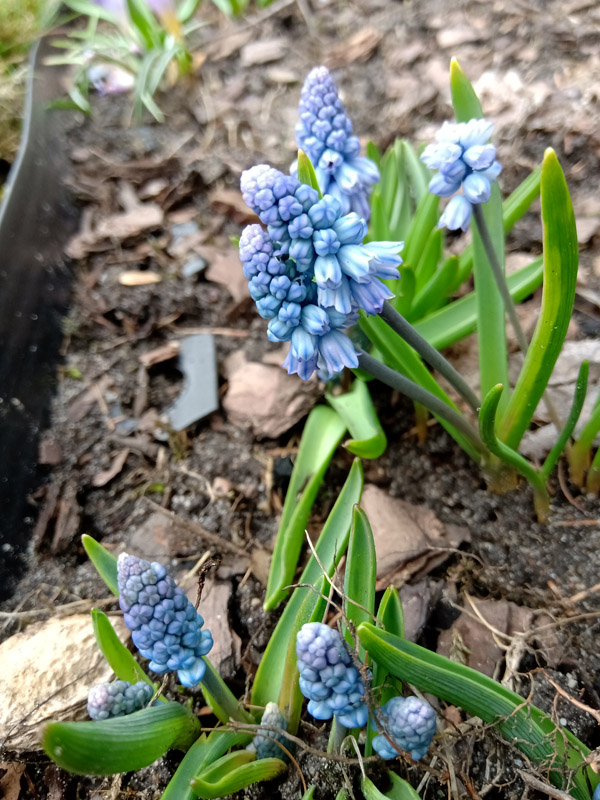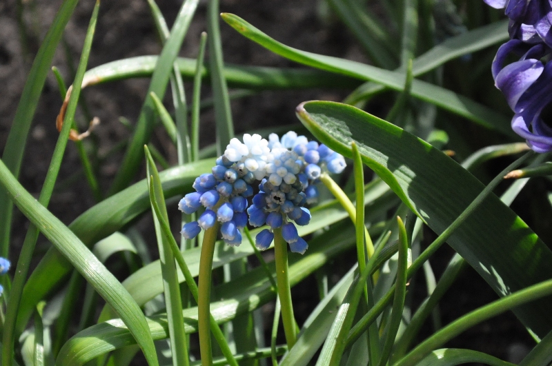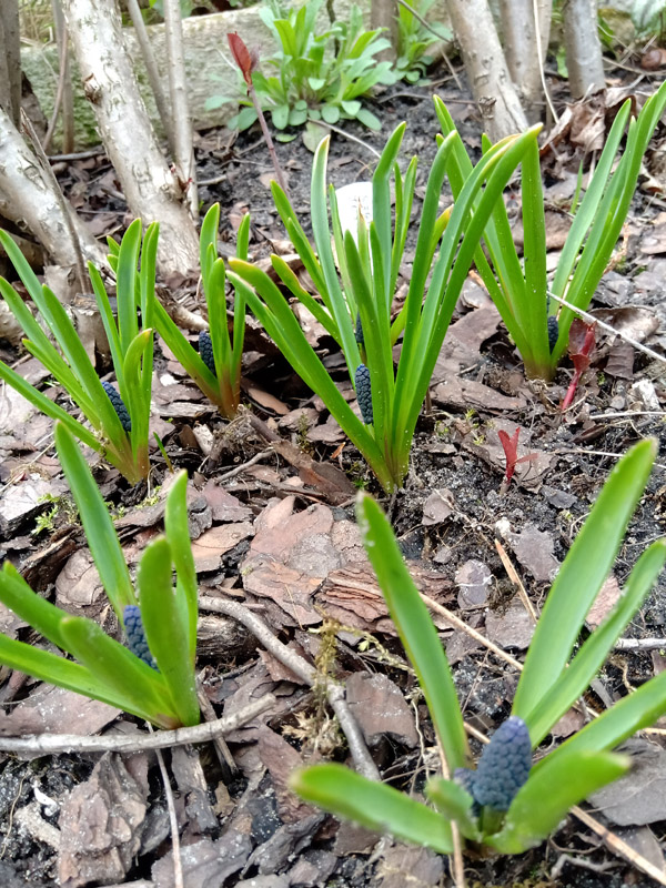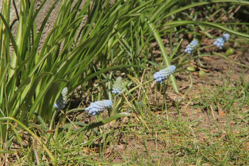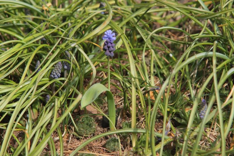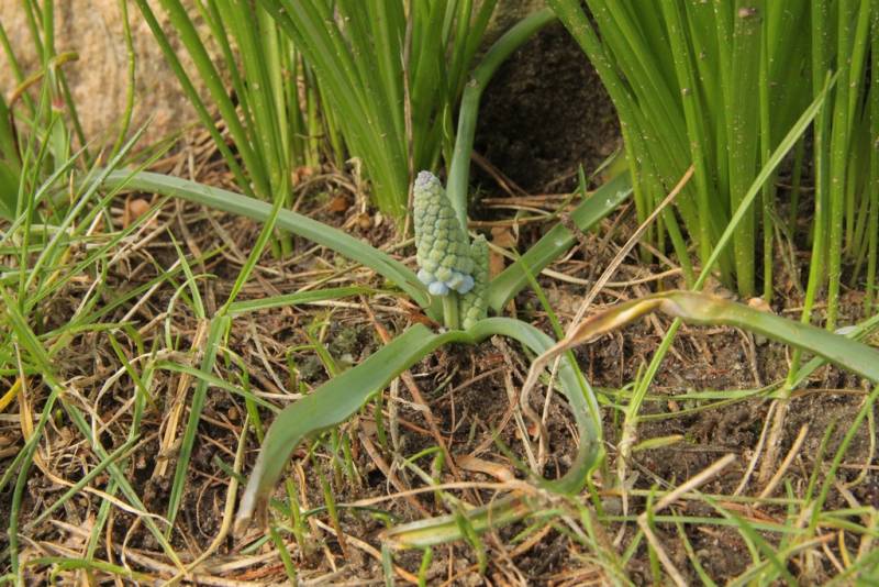 Szafirki szerokolistne nieco zanikły w miejscu, w którym rosły rok wcześniej, ale za to pokazały się też pomiędzy zwykłymi szafirkami, więc od razu je zaznaczyłem do przesadzenia po sezonie.