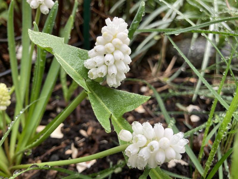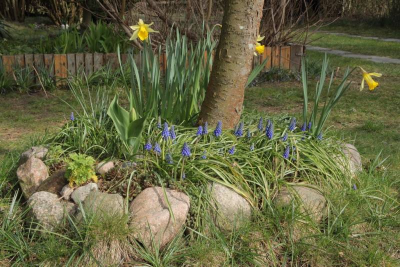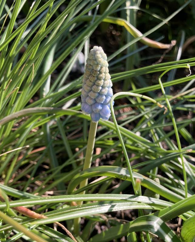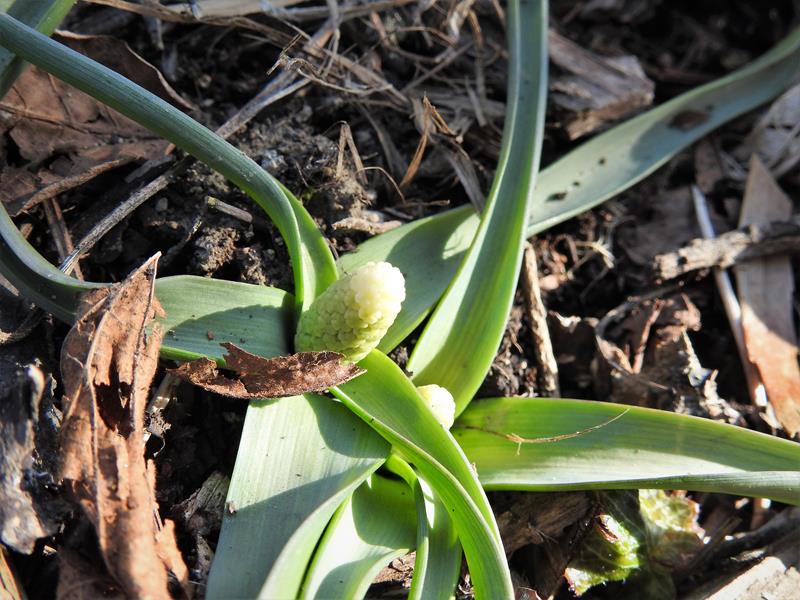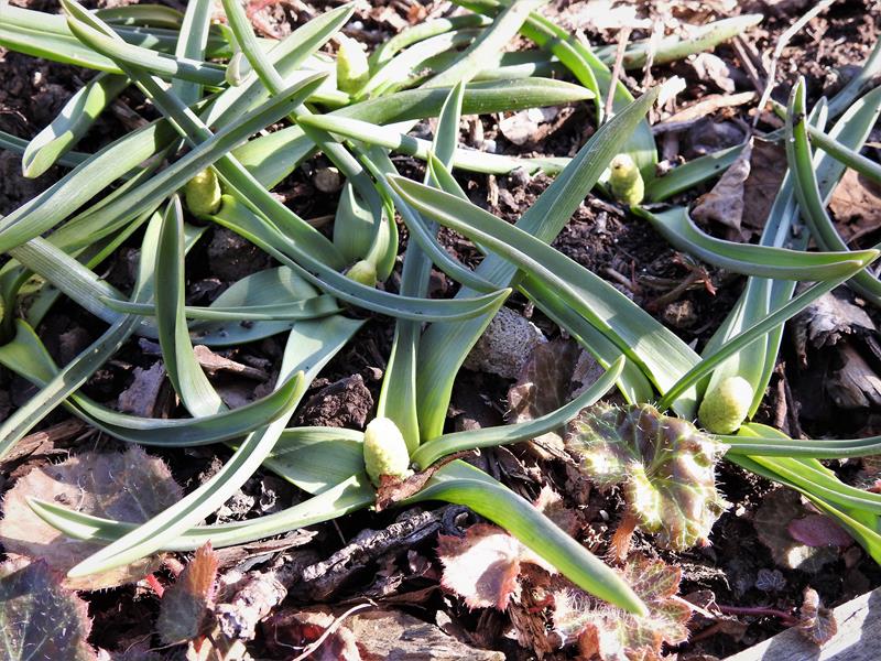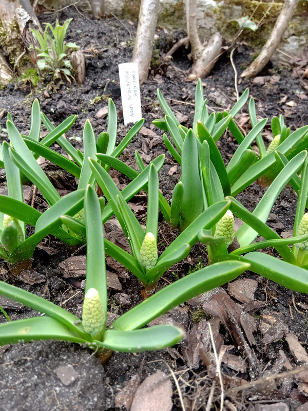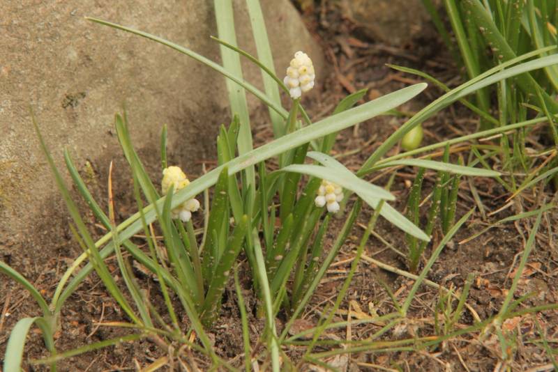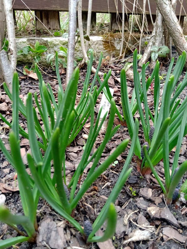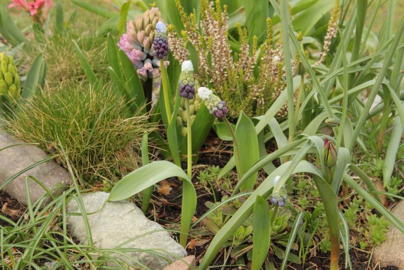 Szafirki szerokolistne nieco zanikły w miejscu, w którym rosły rok wcześniej, ale za to pokazały się też pomiędzy zwykłymi szafirkami, więc od razu je zaznaczyłem do przesadzenia po sezonie.