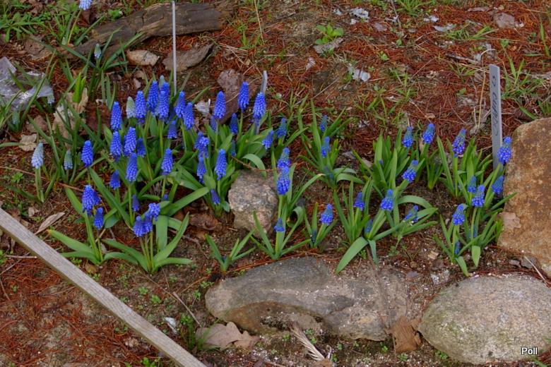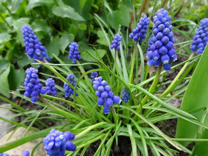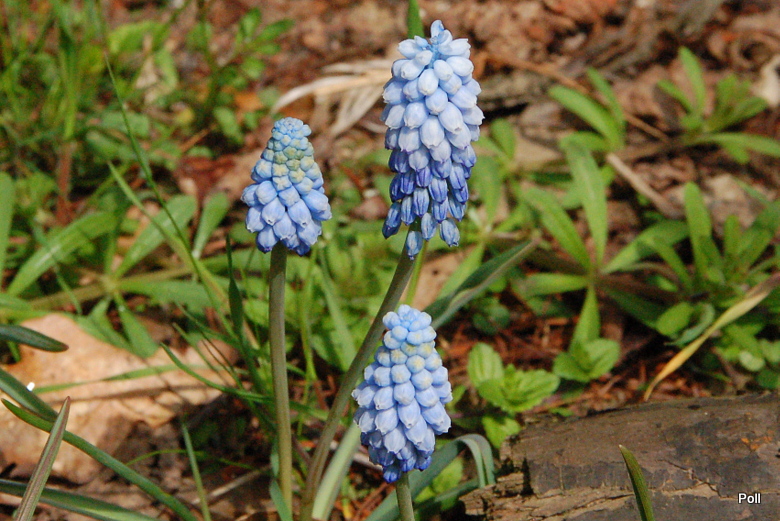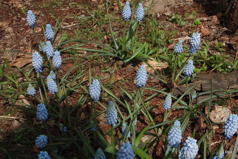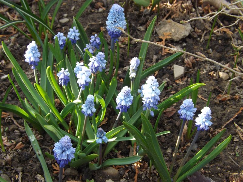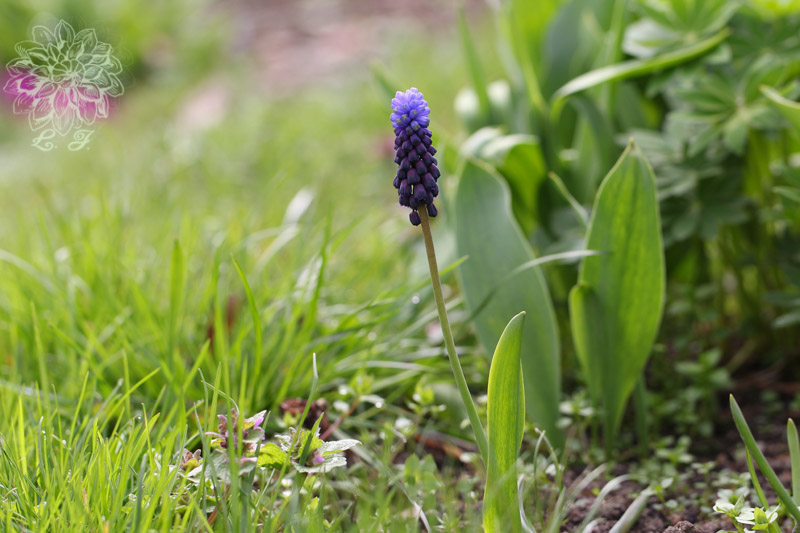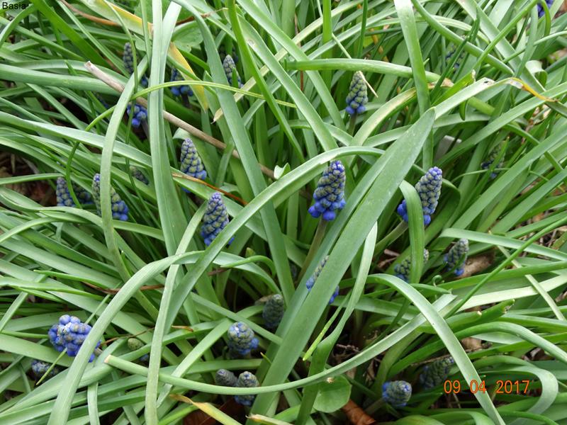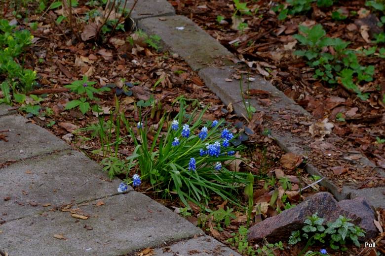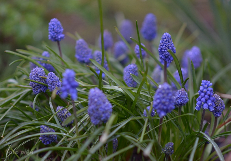Szafirek Mount Hood, który u mnie nie kwitnie zbyt obficie. Ma więcej liściorów, niż kwiatów