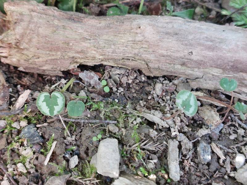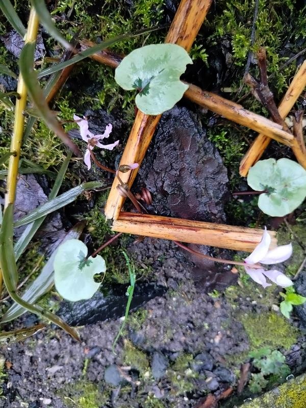 Cyclamen hederifolium 'Special Leaf Alba' muszę szybko ewakuować z zajmowanego stanowiska, bo z rodkiem raczej nie wygra...